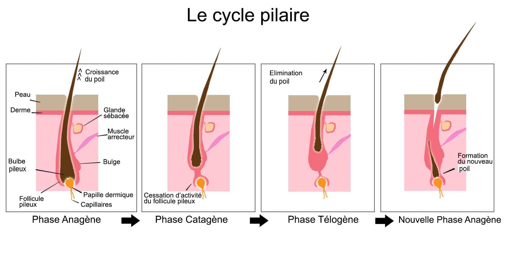 Chaque séance la lumière détruira les poils en phase anagène, soit environ 10 à 25 % selon les zones . C’est pourquoi il faudra plusieurs séances pour un résultat optimal, en moyenne 6 à 8 . Ces séances doivent être espacé de 6 à 8 semaines afin de s’assurer de la présence suffisante de poils au stade anagène lors de la prochaine séance.