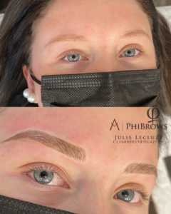 Cela permet d’obtenir une réplique parfaite du sourcil naturel idéal en une heure de temps seulement. » Comment procède la technicienne ? Elle redessine le sourcil et comble les trous en traçant un trait ultra fin qui imite le poil à la perfection. Effet naturel garanti dès la fin de la prestation ! Après la première séance, une séance de retouche est nécessaire environ trois semaines après pour fixer le travail de pigmentation et lui assurer une longue durée d’environ un an et demi. (une retouche par ans est nécessaire pour le garder à vie )