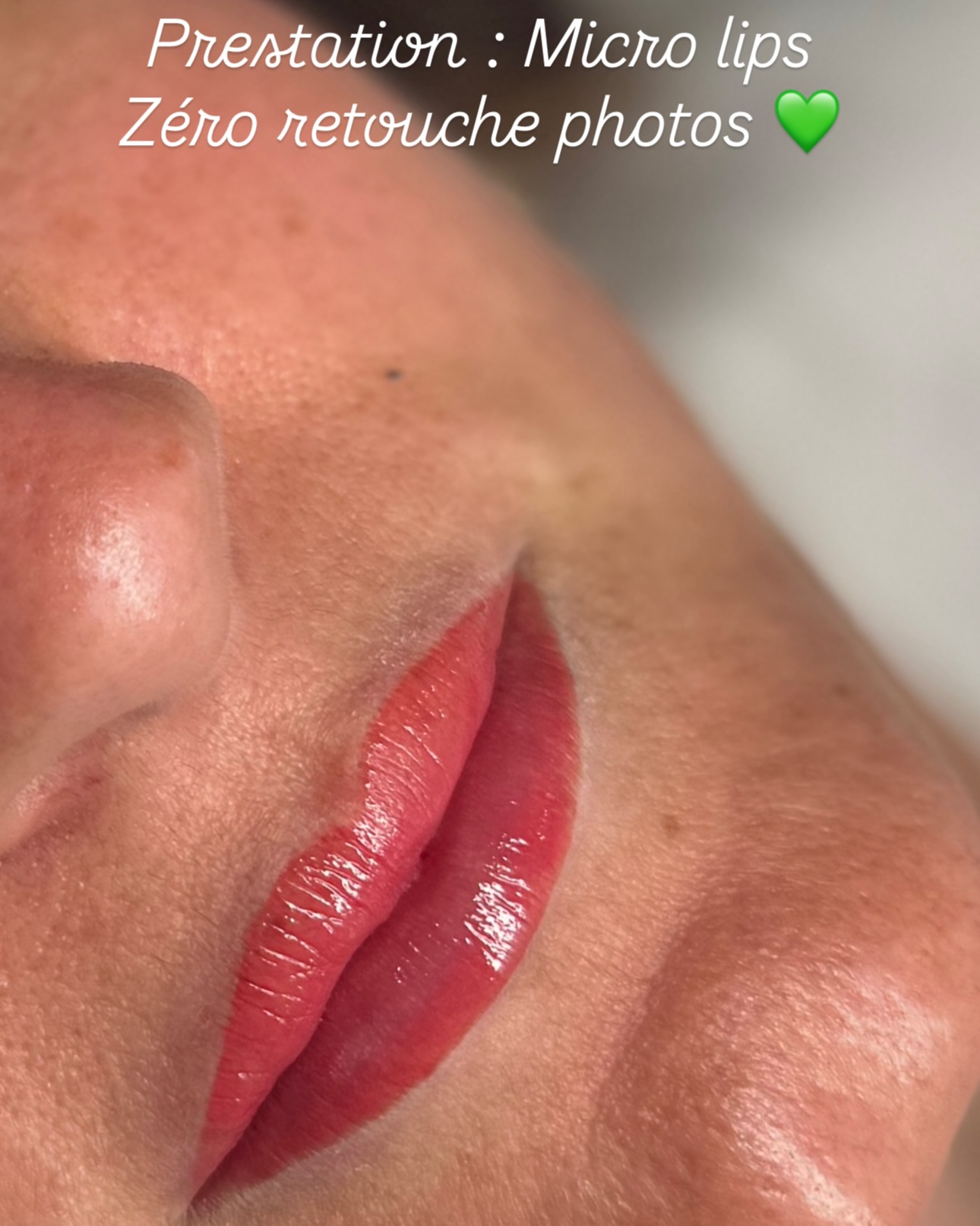 Micro Lips | Prestation réalisée par Ambre débutant dans la Dermo-pigmentation formée en interne par Julie. Le résultat sera le même et sera systématiquement contrôlé avant pigmentation par Julie | 2h 30min