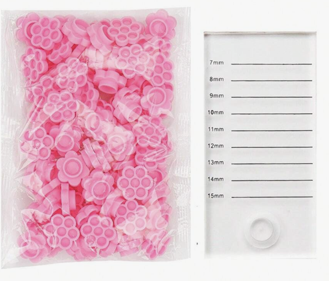 Optimisez vos prestations d’extension de cils avec ce kit pratique et innovant, composé d’une pierre à cils graduée (7 mm à 15 mm) et de supports en silicone en forme de fleur.